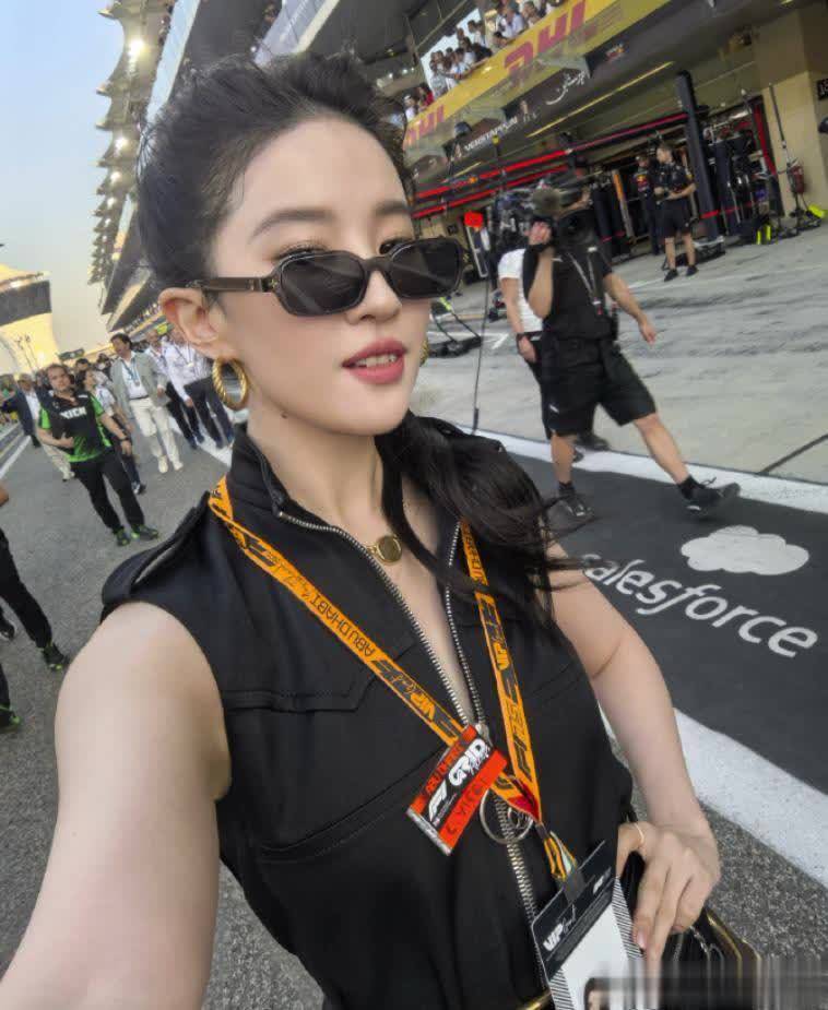 阿布扎比F1赛场边,刘亦菲身着黑色无袖短裙。肌肤在阳光下白到发光神机策神机策,哪还有之前被说肩膀壮的影子?